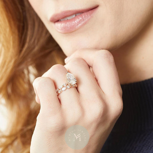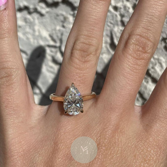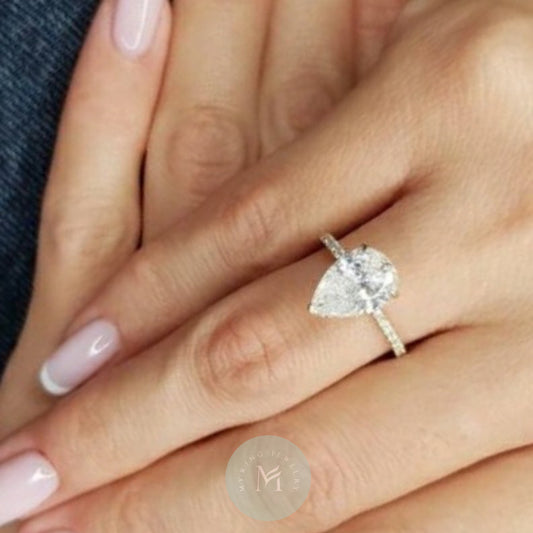 Pear Cut Moissanite Ring with 1 to 3 carats in 9k/10k/14k/18K White Gold, Yellow Gold or Rose Gold