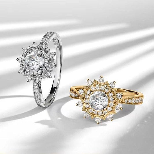 Round Cut Moissanite Ring with 1 to 3 carats in 9k/10k/14k/18K White Gold, Yellow Gold or Rose Gold